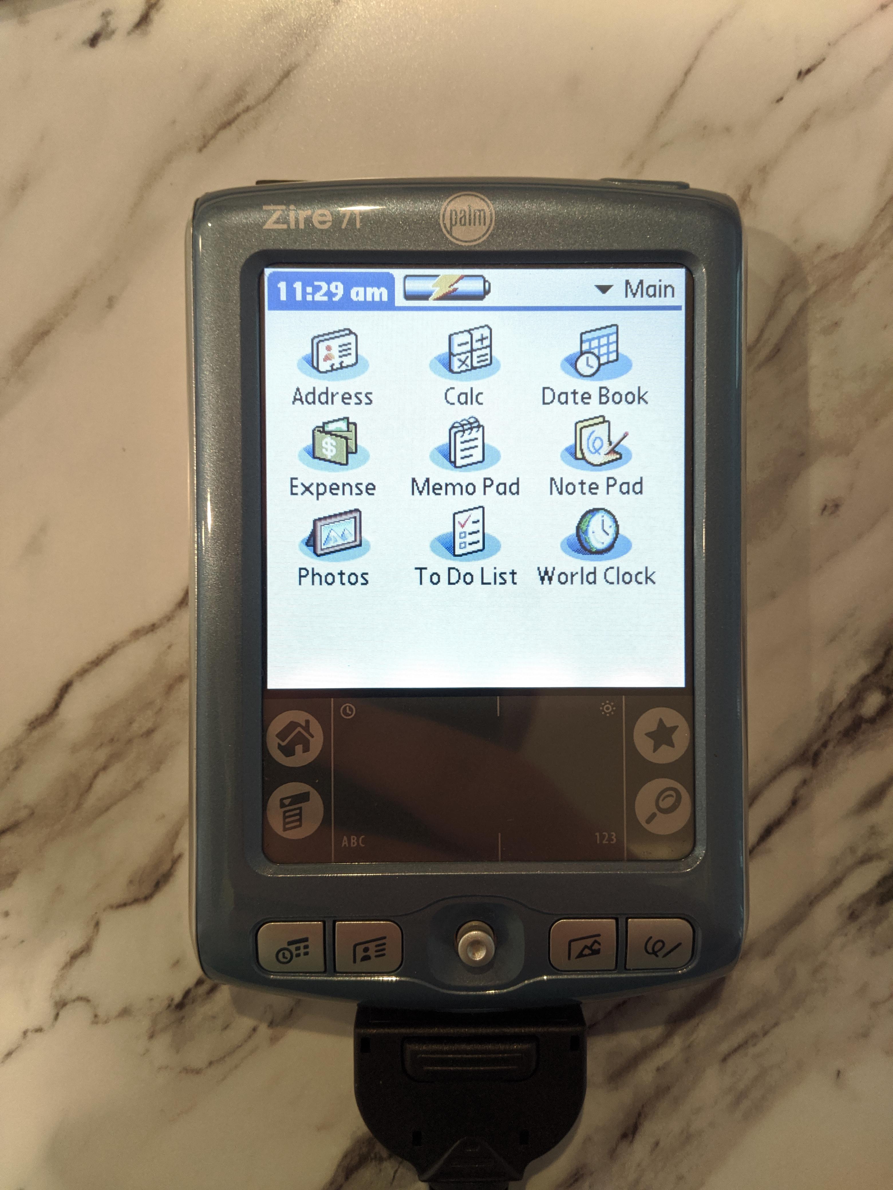The screen is bright and big, 320x320, boasting good image clarity and contrast... Powerful 10w of available charging current (e.g. Included in the box were cables for syncing with a computer via usb, and for charging from a wall outlet, palm desktop software for mac and windows, and a screen protector to apply if desired. 09/12/2003 · its weight was 3.4 oz (96 g). Elegantly designed to be lightweight, compact and highly portable. Regardless if what you're looking for is a usefull and reliable pda, the zire 71 is one of palm's best. The screen is bright and big, 320x320, boasting good image clarity and contrast... By in qualcomm logo change.